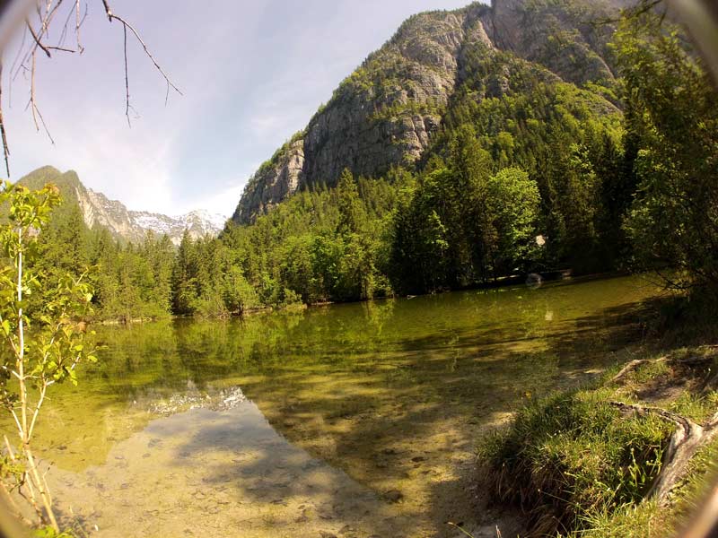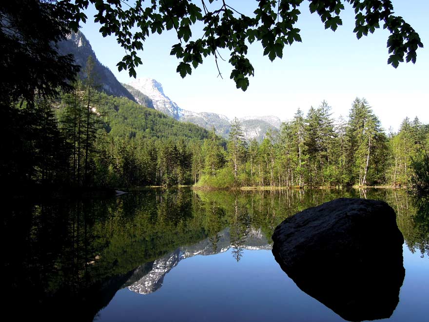 a small periodical lake. it fills only in time of the melting snow. the water is crytal clear but very very cold. in summer the lake disapears. its surrounded by the north faces of the dachstein glacier.