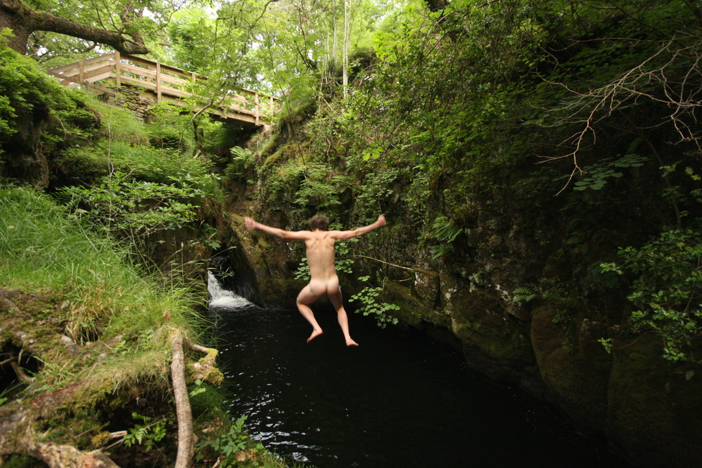 From Sligachan Hotel (A87) follow A863/ B8009 and turn L (signed Glen Brittle) just before Carbost (Talisker Distillery – yum). After 4 miles find ‘Fairy Pool’ car park on L. Cross road and follow clear path down and then up valley, keeping to L of stream for ¾ mile to find several pools. Good jump into the underwater arch pool.
