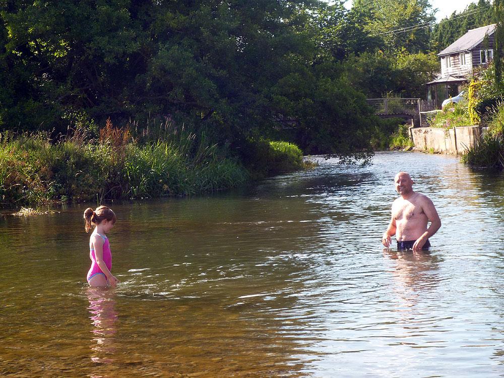 Nice quiet spot in the summer at the joining of the River Teme and River Clun for a swim or a paddle. The River Teme lazily winds it’s way towards the site through a lovely green meadow and is mainly warm, clear and shallow. The River Clun runs towards the site through a confluence and (I’m assuming) was used as the old mill stream.